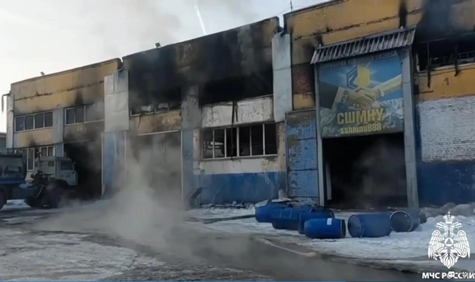 Пожар охватил двухэтажное складское здание на Защитном проезде в Новокузнецке.