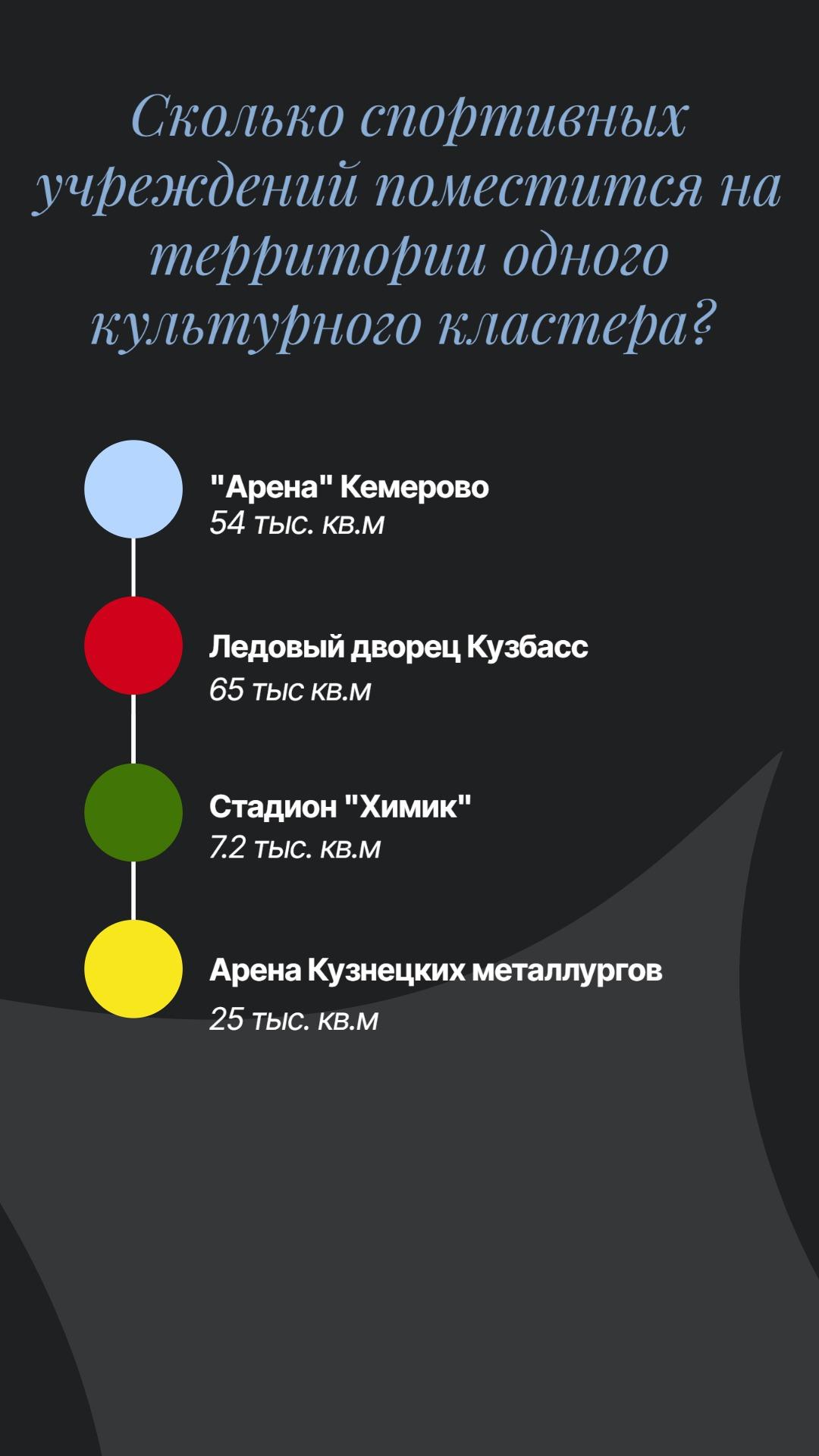 Помимо объектов культуры, для сопоставления взяты крупные спортивные комплексы Кузбасса.