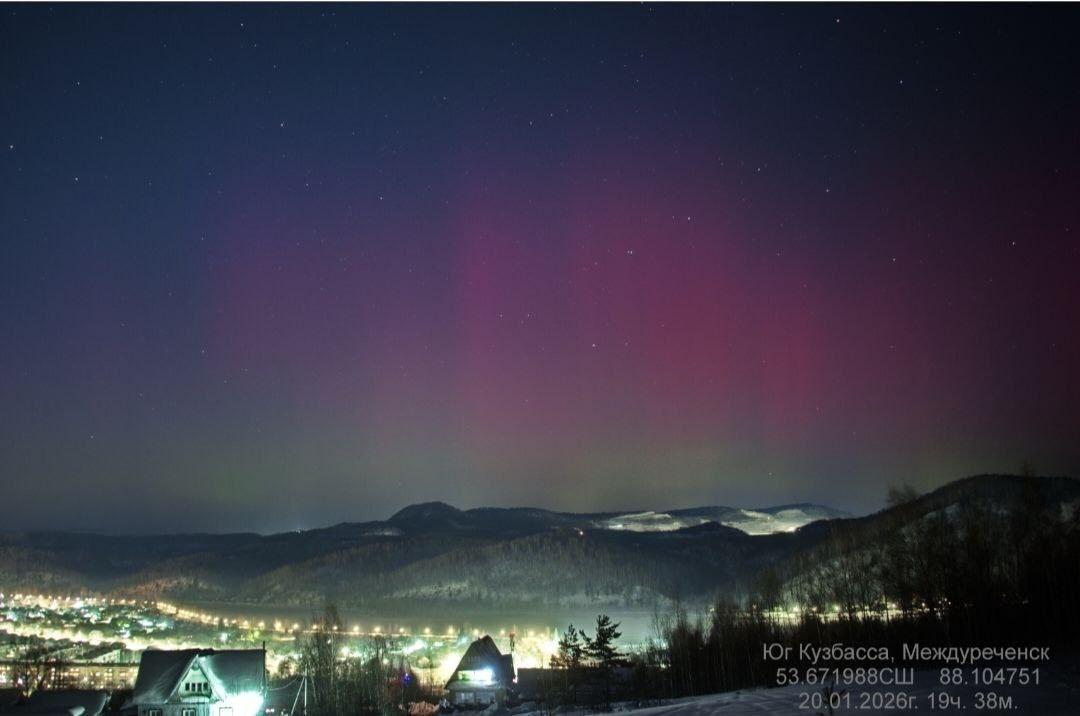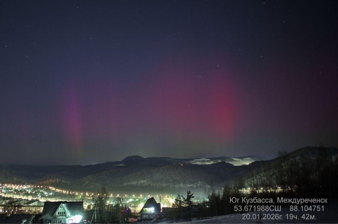Мощное полярное сияние окрасило ночное небо над Сибирью в ночь на среду, 21 января. По оценкам специалистов, это атмосферное явление, возможно, больше не повторится над Кузбассом до конца текущего года.