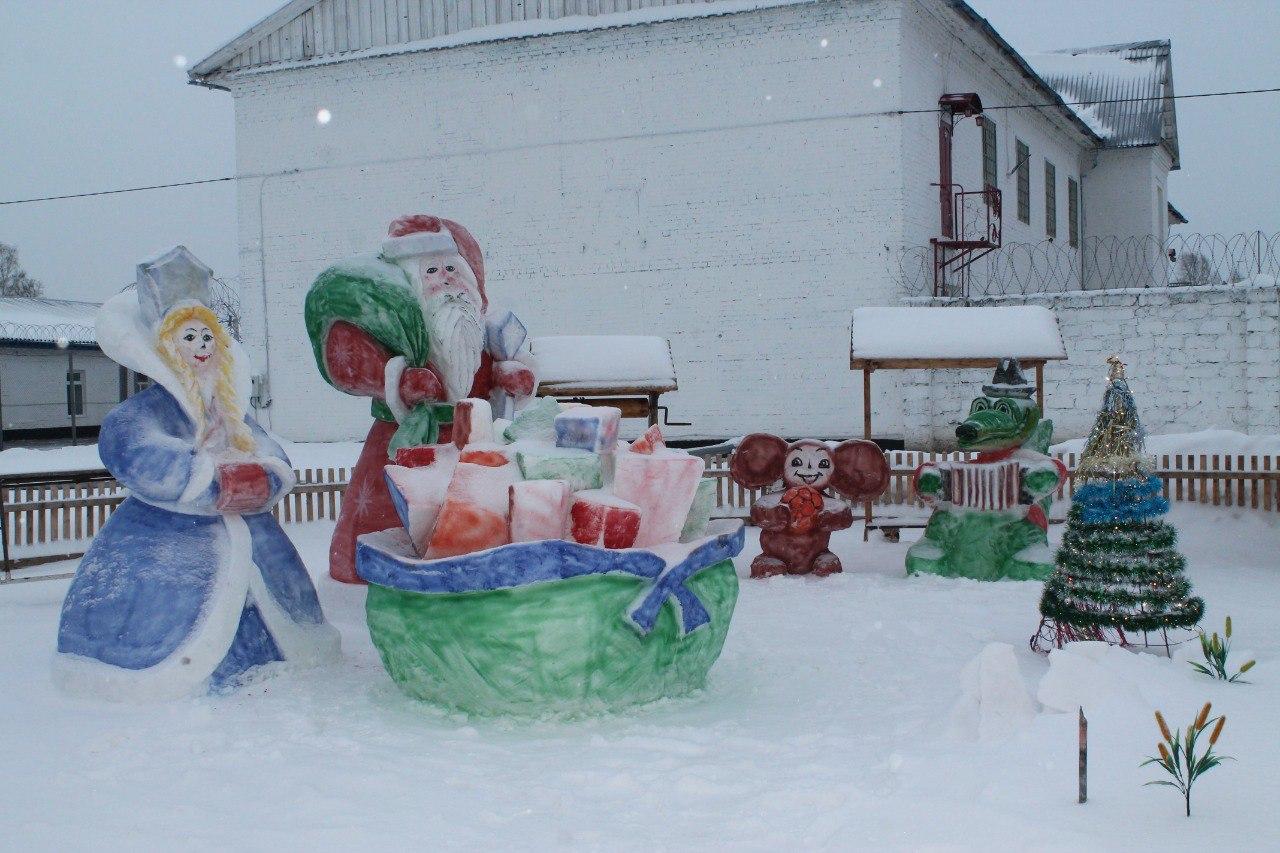 В кузбасских исправительных учреждениях появились масштабные снежные парки. Фотографии ледяных фигур обнародовала пресс-служба областного ФСИН.