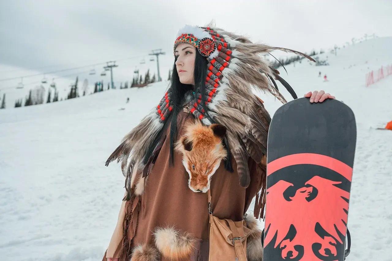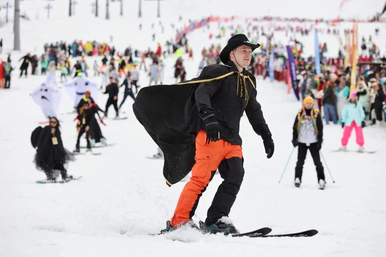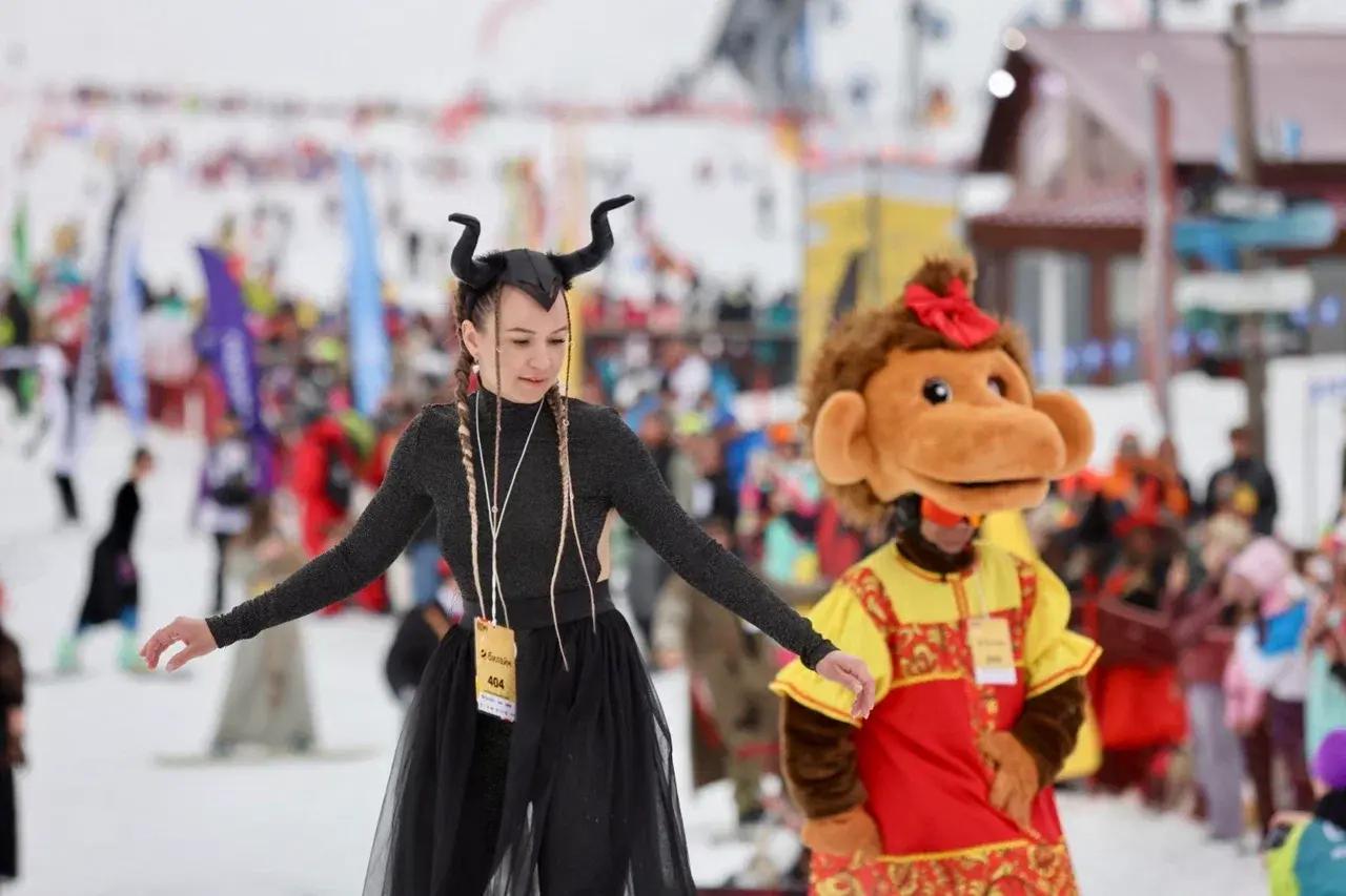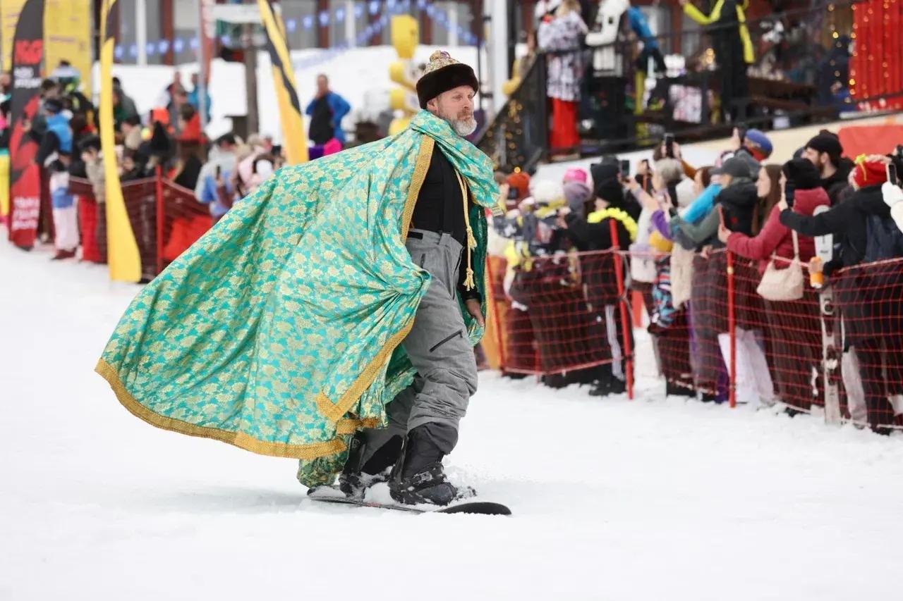 Помимо костюмов супергероев и персонажей мультфильмов, на склоне появились русские красавицы в кокошниках и сарафанах, а также цари в кафтанах и мантиях.