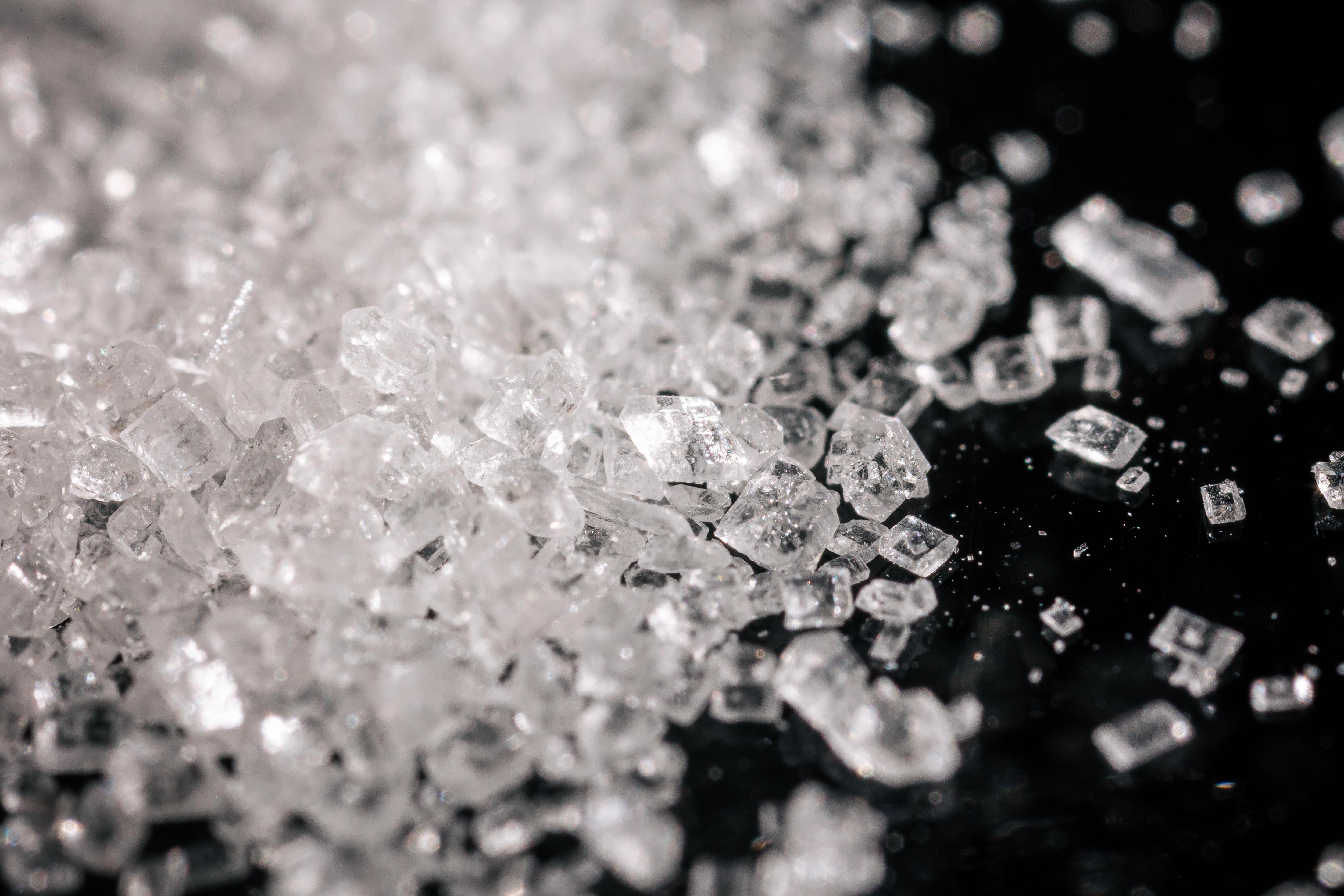 Под микроскопом обычный сахар выглядит как россыпь сверкающих кристаллов.