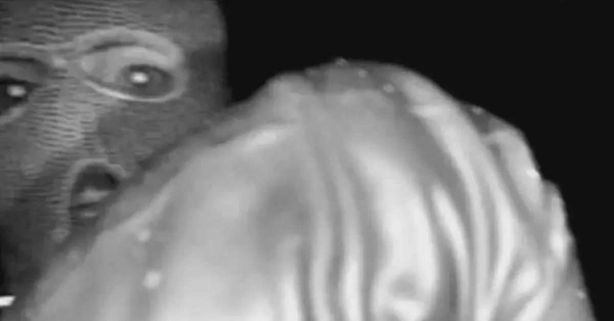 На записи камеры наблюдения виден мужчина в маске и чёрных перчатках.
