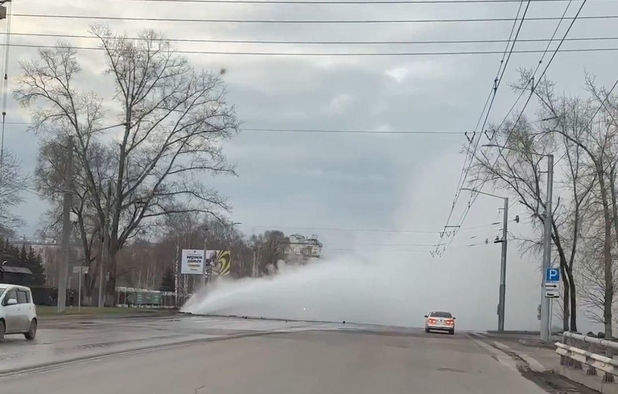 Прорыв труб горячего водоснабжения привел к повреждению транспорта и увеличению интервалов движения.