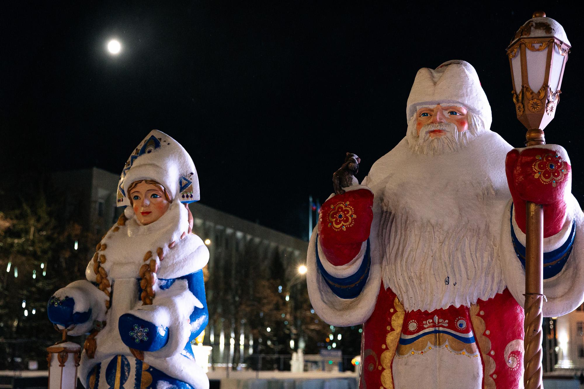 Свой пост приняли Дед Мороз со Снегурочкой — они следят за новогодним настроением в городе.