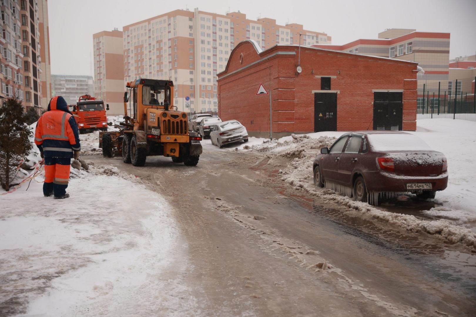 Утром 12 марта на Притомском проспекте произошла коммунальная авария, в результате которой водой залило внутриквартальные проезды и часть дороги.