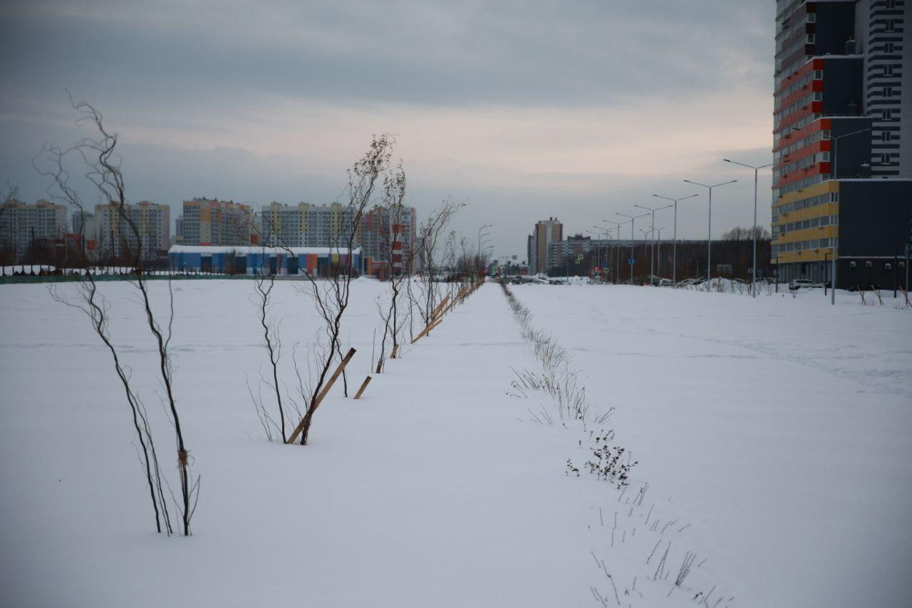 Вдоль будущей магистрали высажены молодые деревья.