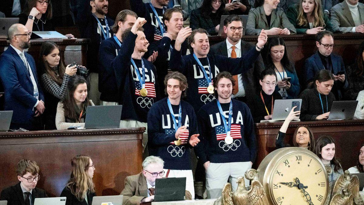 Сборная США по хоккею прибыла на послание о положении страны под крики «США!».