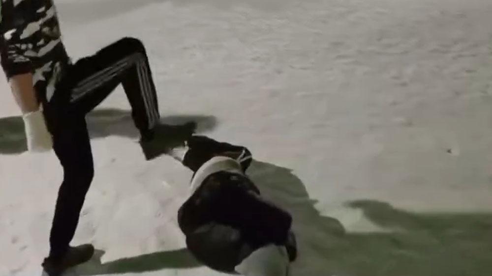 Телеграм-канал «ЧП Инцидент Кузбасс» опубликовал видео, на котором двое молодых людей нападают на девушку в районе местной дамбы. На записи видно, как они бьют жертву руками и ногами, а затем прыгают на неё, когда та лежит на земле.