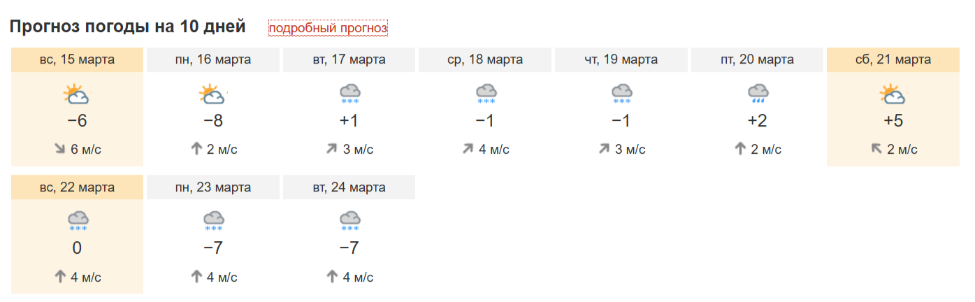 Однако к концу месяца, как отмечает сервис, зима вернется: вновь ожидаются снегопады и похолодание до -10 градусов. Более-менее комфортная погода для прогулок возможна только 31 марта.