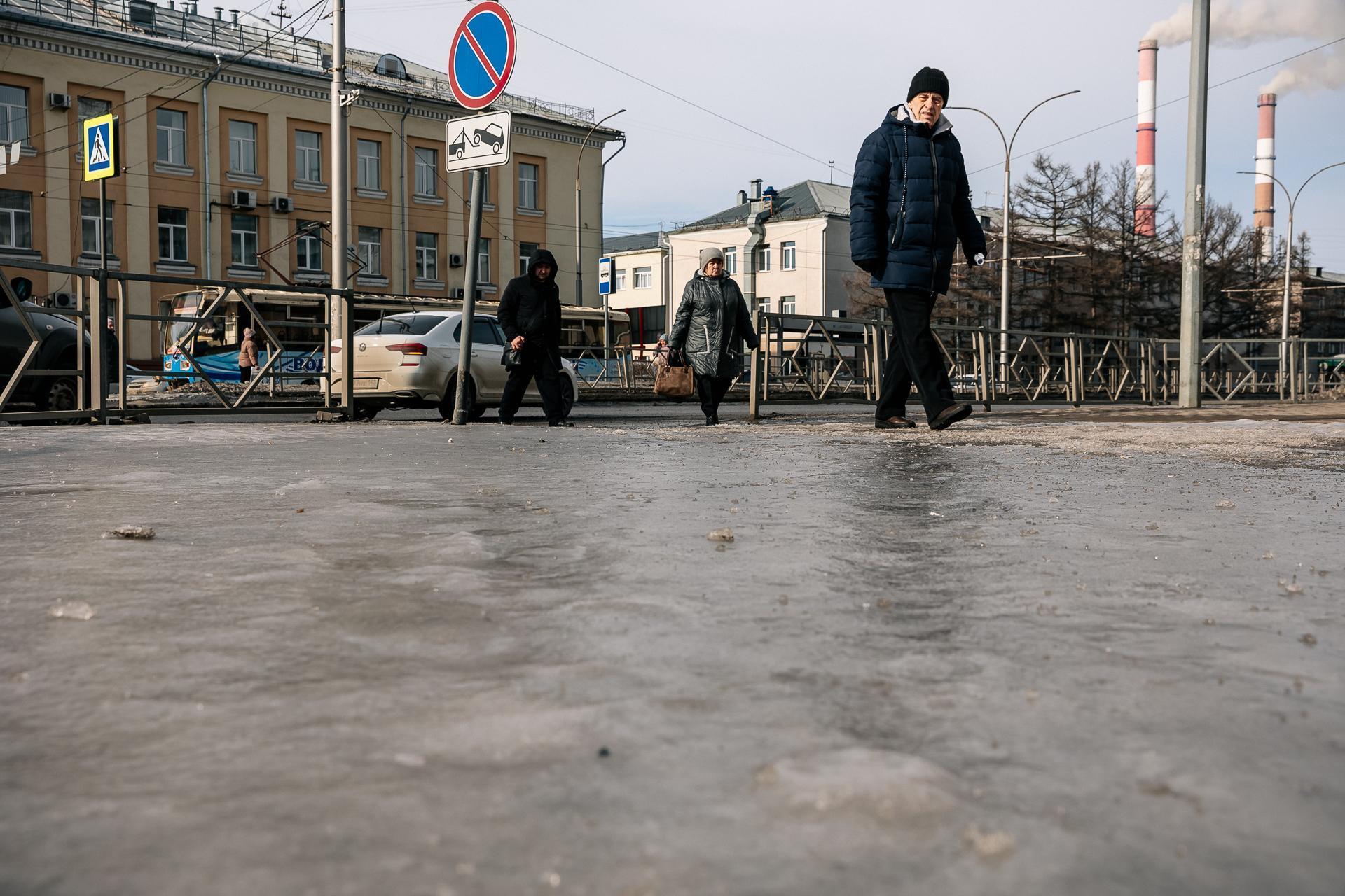 Наиболее опасными стали остановки общественного транспорта, где люди теряют равновесие и падают. «Сегодня женщина рядом стояла на остановке и уехала прямо под колеса, хорошо, что водитель успел затормозить», — рассказал очевидец.