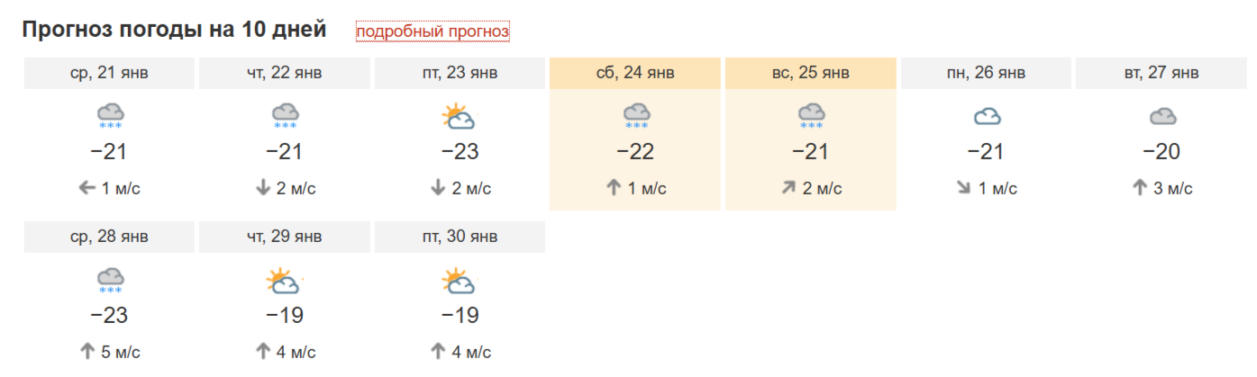 Этот сервис также предсказывает плавное повышение температур. Если сейчас днем в среднем по региону показывает -20…-27 градусов, то к началу февраля потеплеет до -11…-18.