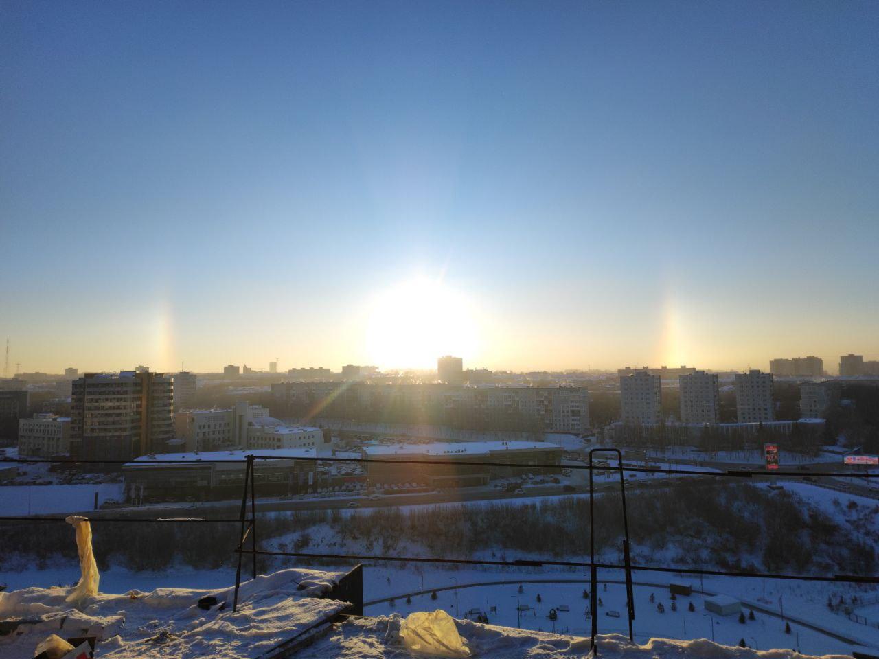 Специалисты метеослужбы ранее поясняли, что так называемый горожанами «нимб» является оптическим феноменом — гало. Его образование связано с устойчивыми морозами и повышенной влажностью в регионе. В таких условиях в атмосфере образуются ледяные кристаллы, которые преломляют солнечный свет и создают свечение в форме круга.